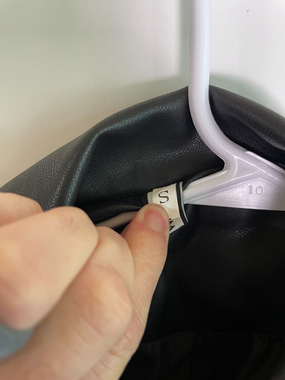 Women's S Pink Bow Faux Leather Full Zip Bomber Jacket Black Oversized Kawaii