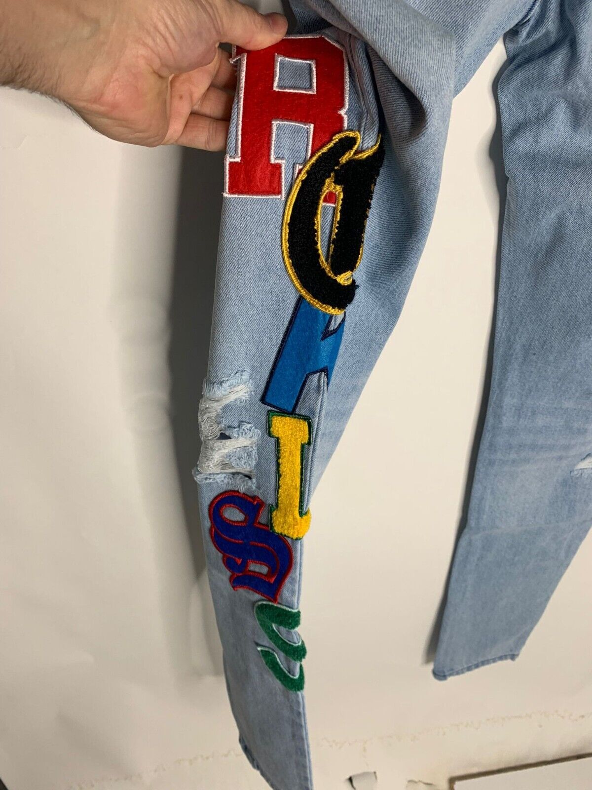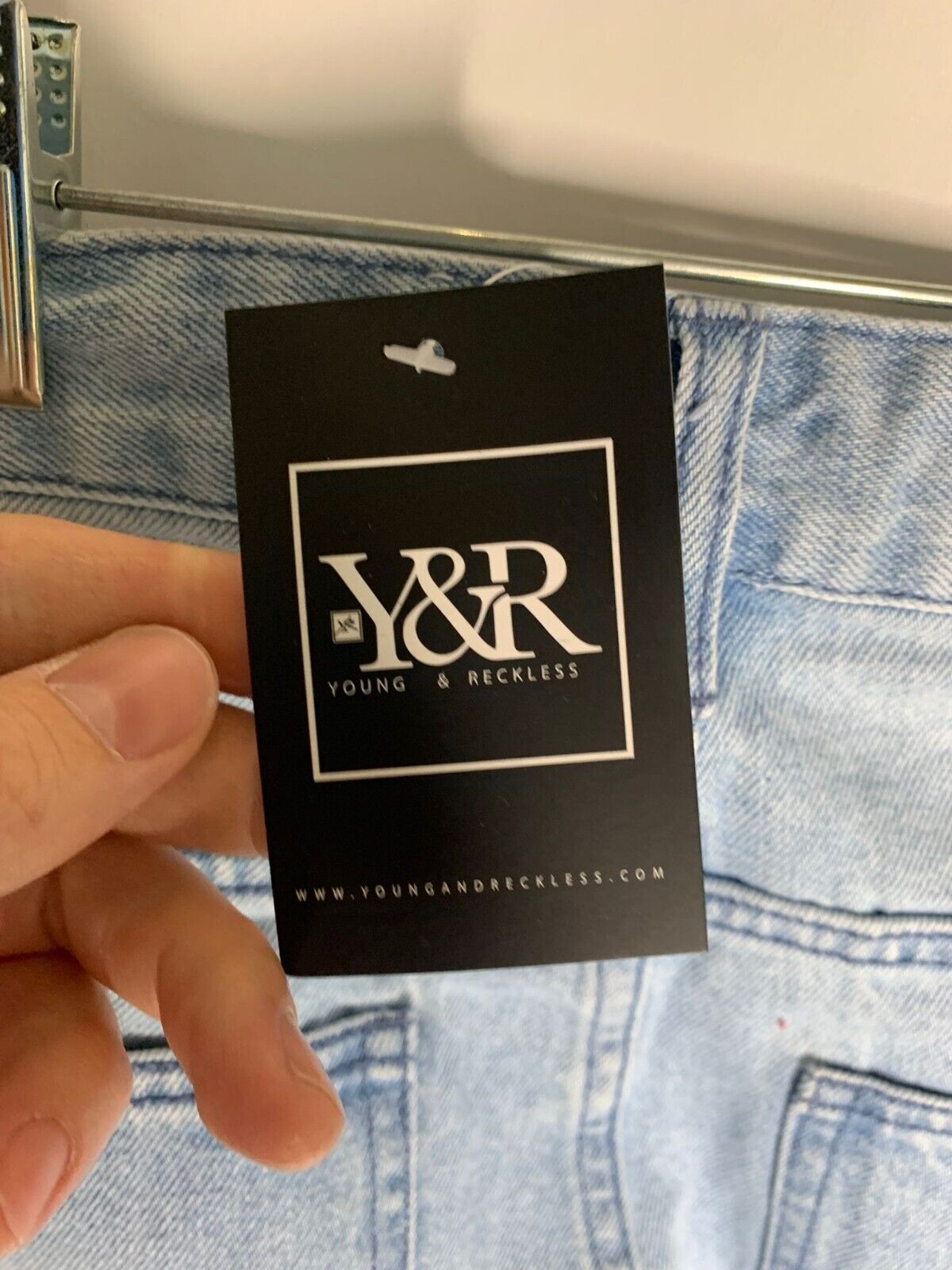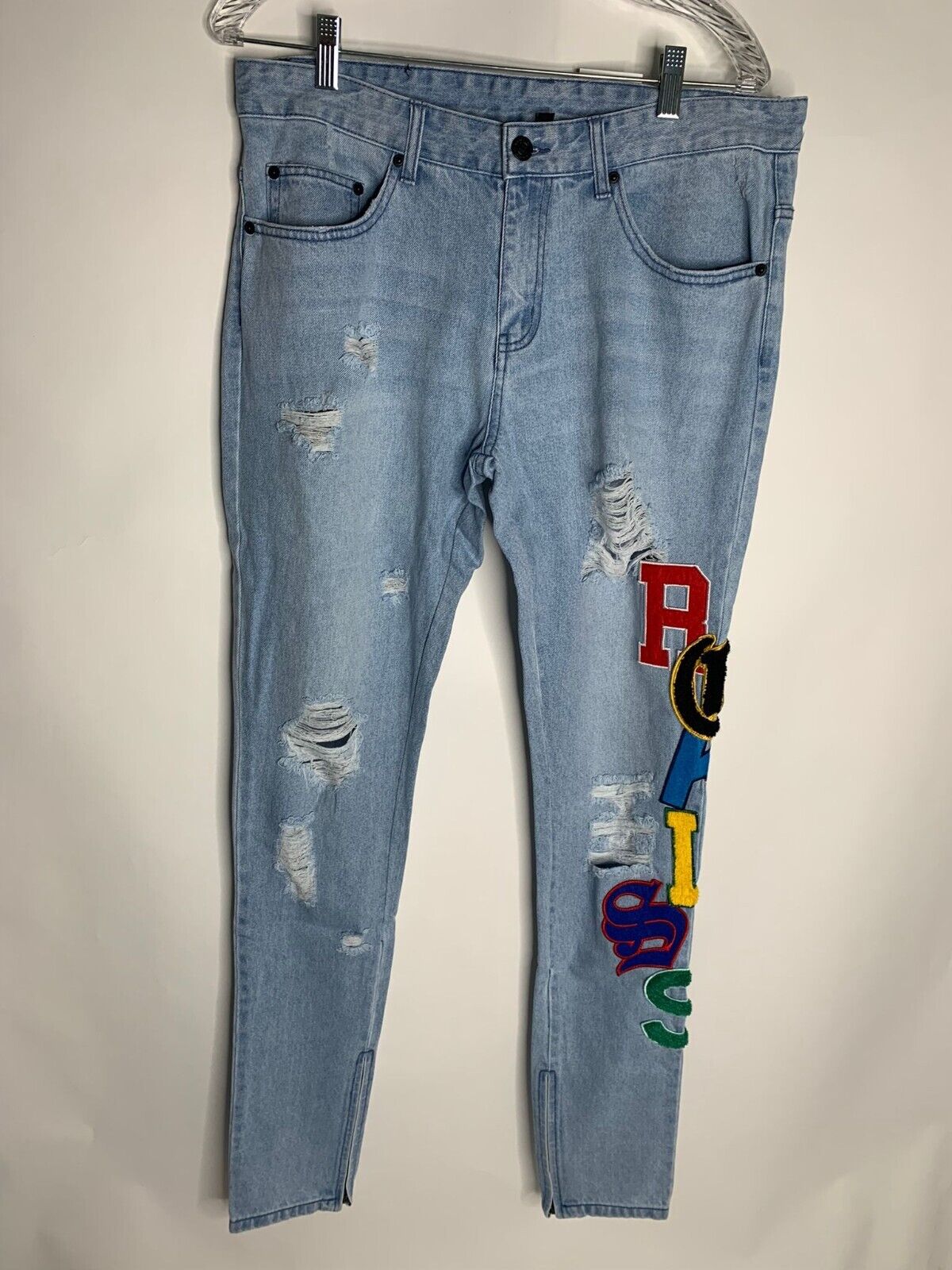 Young Reckless Men 34 Vertical Synthesis Light Wash Denim Jeans Tapered Slim 32