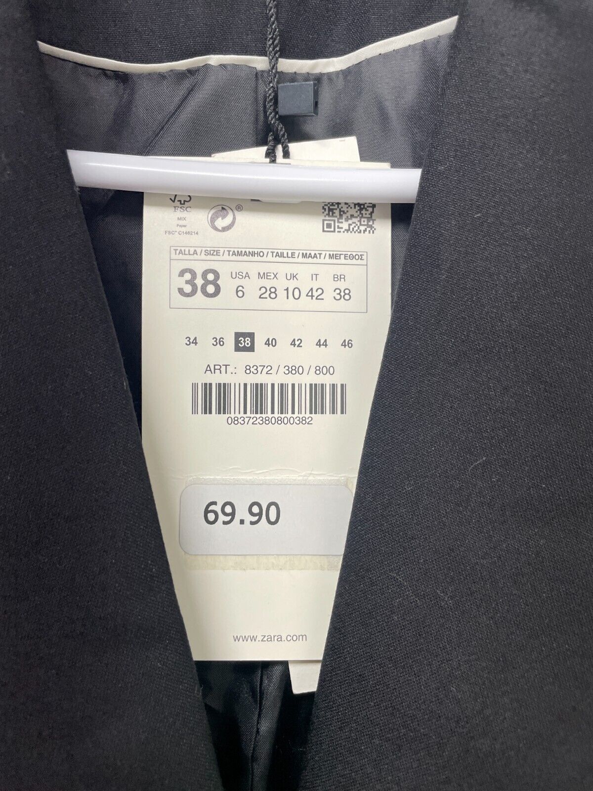Zara Womens 6 Basic Blazer Black Long Sleeve Lapel Collar Pockets 8372/380/800