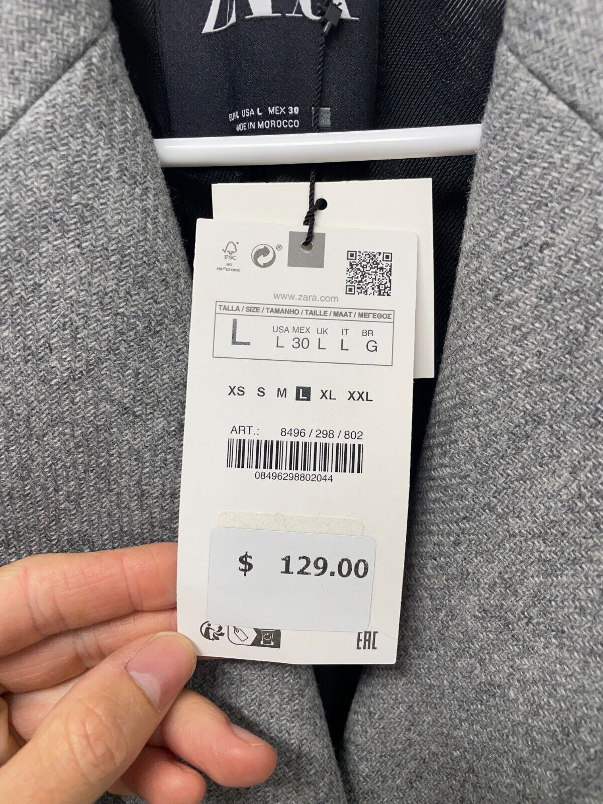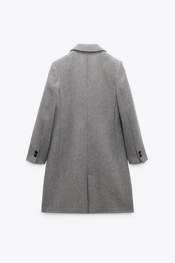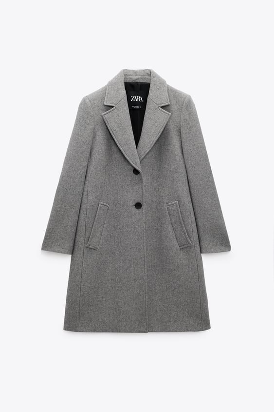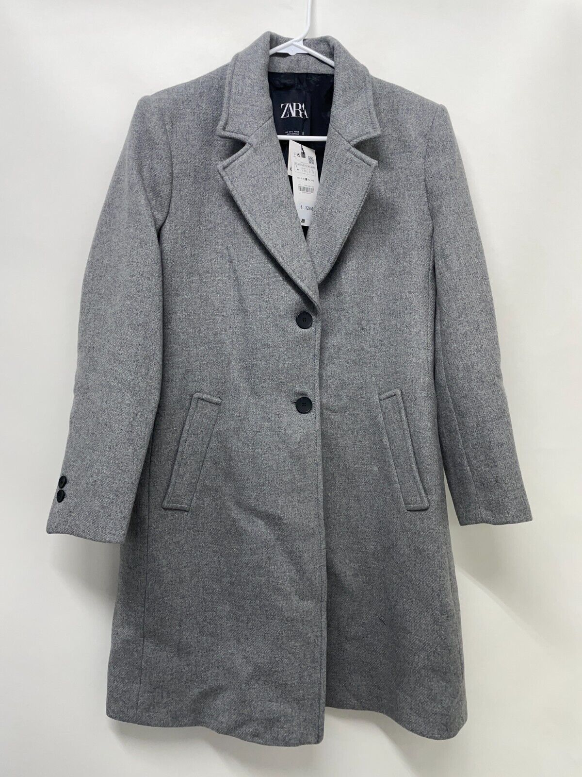 ZARA Womens L Wool Blend Fitted Coat Grey Collared Side Slash Pockets 7322/386
