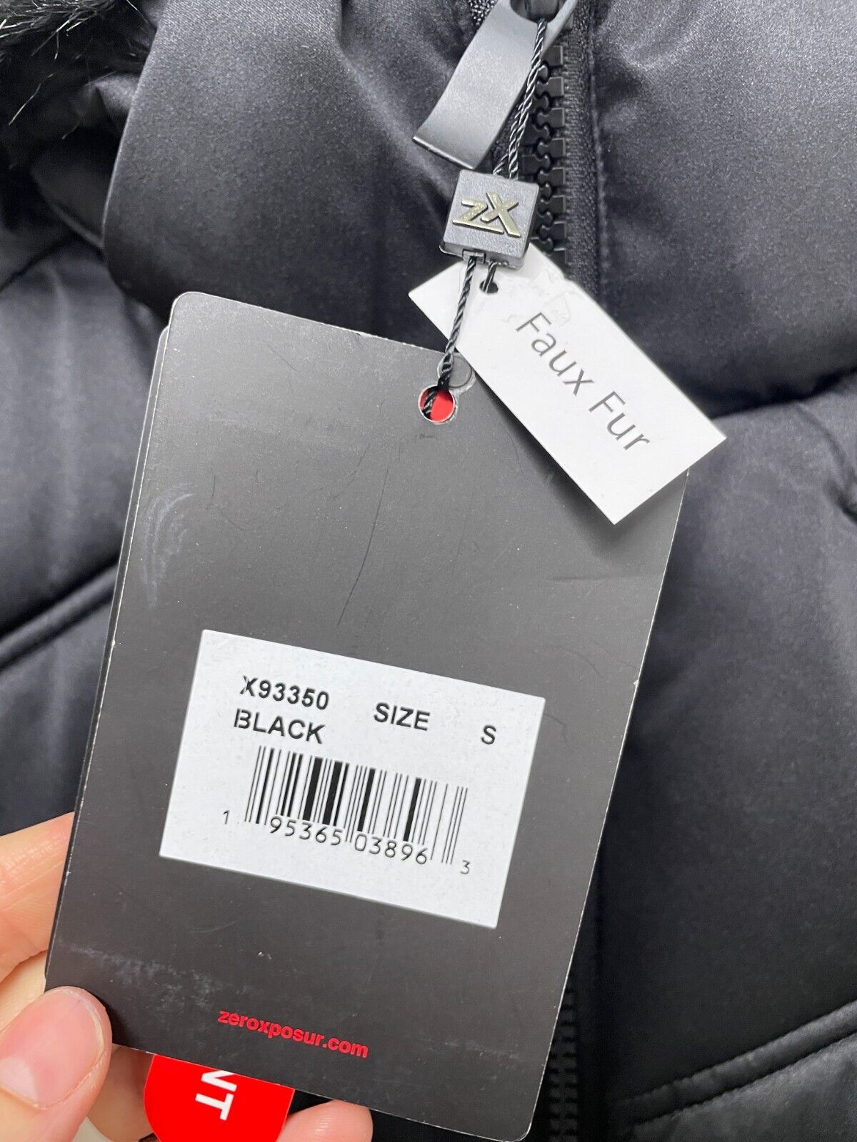 ZeroXposur Womens S Miranda Faux-Fur Hood Quilted Stretch-Panel Jacket Black
